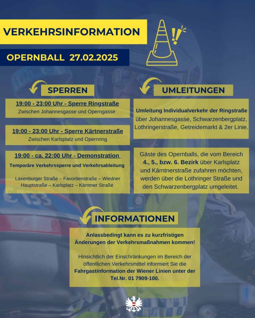 Angekündigte Verkehrssperren anlässlich des Opernballs:
